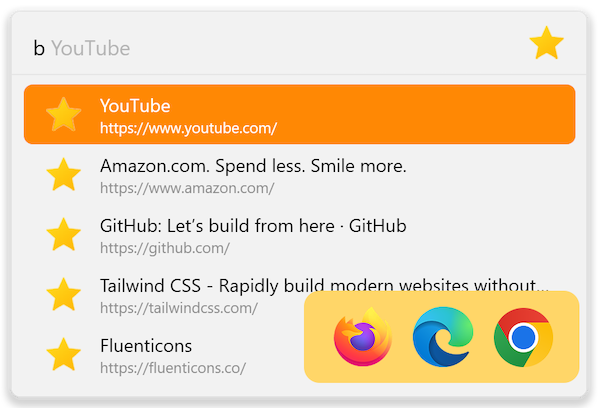 Quickly find bookmarks from different browsers.